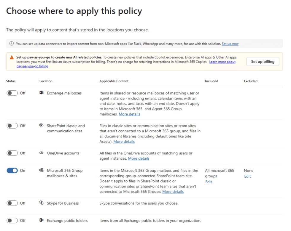 Test Policy 65ab43af-ee53-47ac-a796-aac8934c94f4 True Enforce Exchange, SharePoint, OneDriveForBusiness, Skype, ModernGroup, DynamicScope